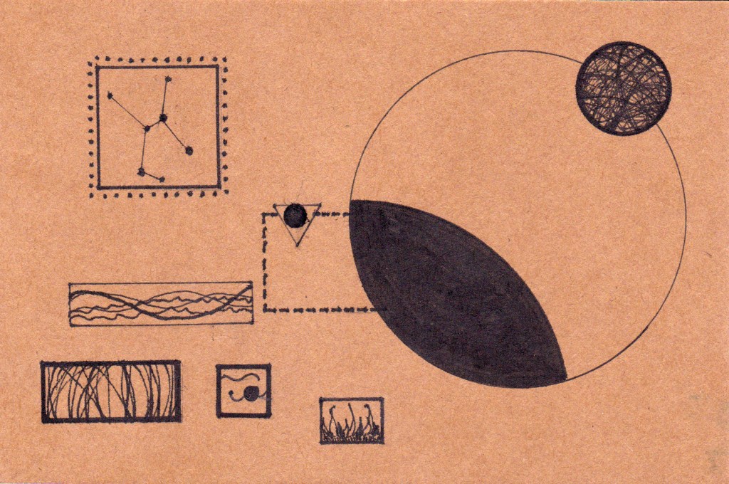 These artworks serve as a process of mapping cosmic spaces of spiritual power for comfort and healing during the Covid19 Pandemic crisis and racist/homophobic/misogynist trauma of 2020-2021. Abstract drawings are created in ink on postcard stock. The lines, shapes, and elemental structures “map” a space of spiritual power.